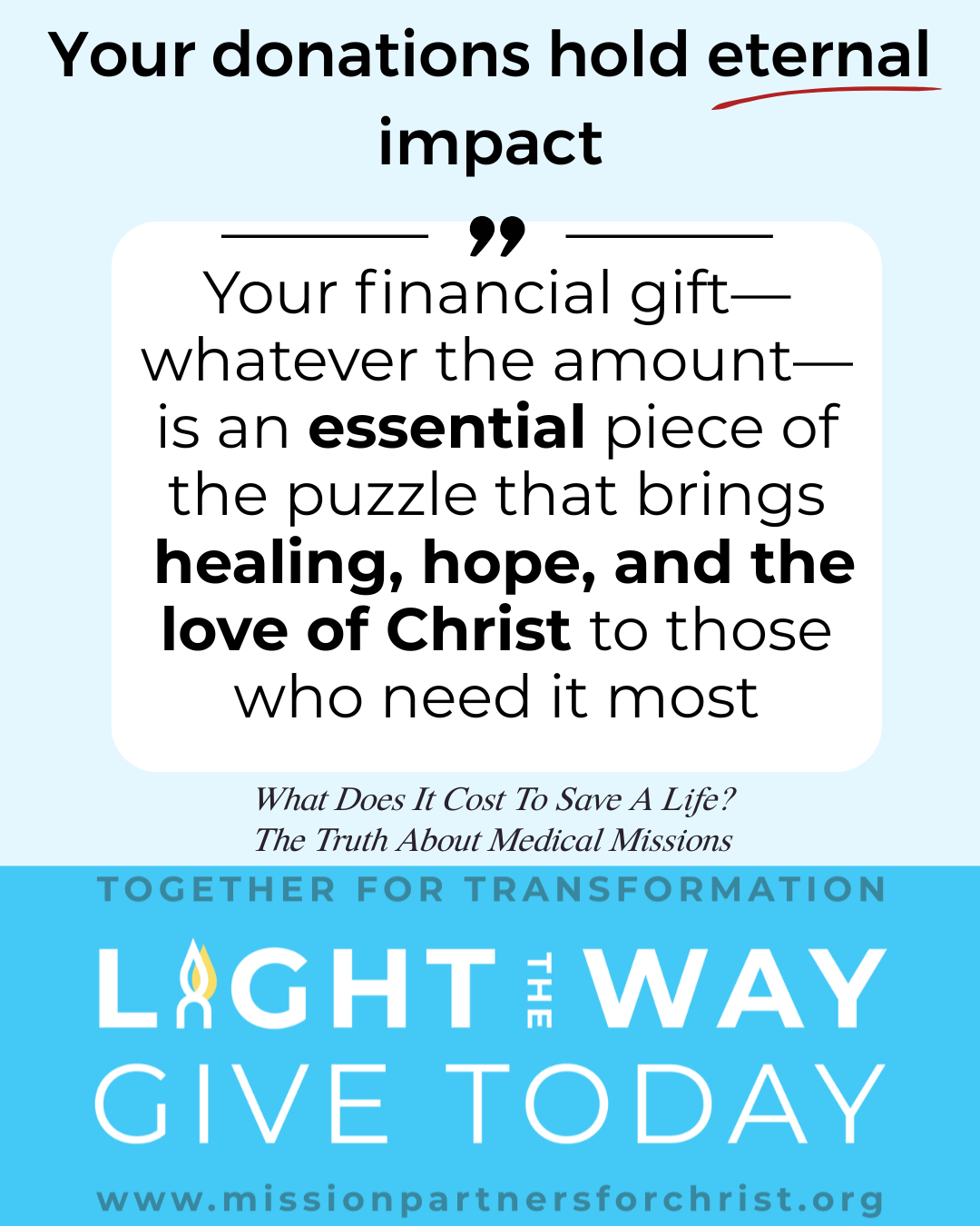 Every medical mission—every life changed, every community transformed—begins with a donor who said yes.